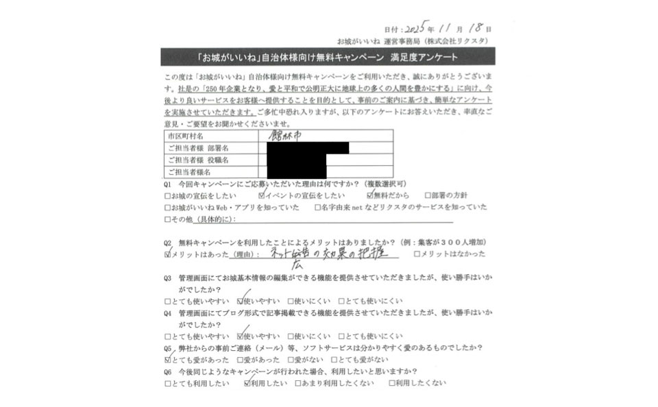 前述の岸和田市のご利用例では、全ユーザーの5%ほどが岸和田城の情報を閲覧するという非常に大きな効果がございました。